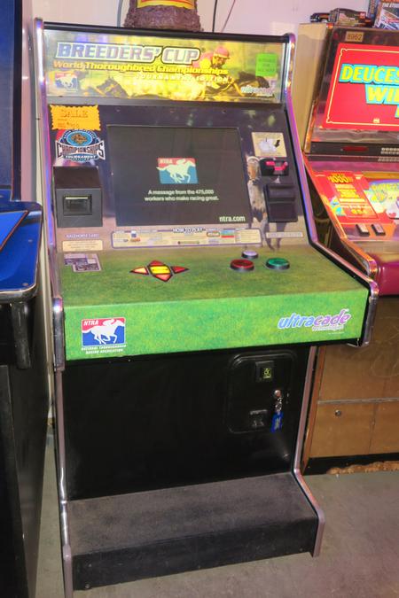 Very niced dedicated Ultracade Breeders Cup commercial coin operated horse racing game. This isnt a title you see very often. Cabinet is in great shape, the lcd monitor has a sharp picture and all the controls work great. Comes with some unused cards so you can save your horse and his stats. Breed your own horse and raise him up to compete